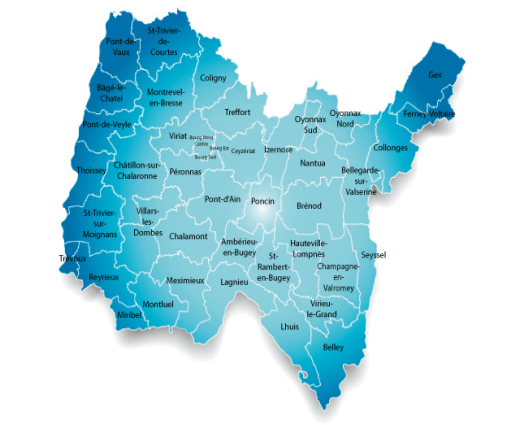 Vos déplacements en taxi conventionné VSL à partir de Bourg en Bresse, Thoissey, Trévoux, Montluel, Villard les Dombes, Chatillon sur Chalaronne, Viriat, Montrevel en Bresse, Pont de Vaux, Colligny, Poncin, Pont d'Ain, Ambérieu en Bugey, Lagnieu, Belley, Virieu le Grand, Brénod, Nantua, Oyonnax, Bellegarde sur Valserine, Gex, Ferney-Voltaire...